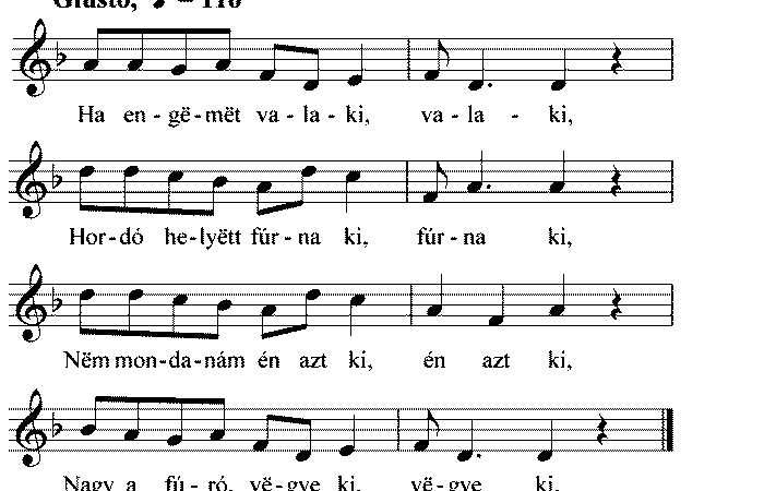 Ha engëmët valaki, valaki, Hordó helyëtt fúrna ki, fúrna ki, Nëm mondanám én azt ki, én azt ki, Nagy a...