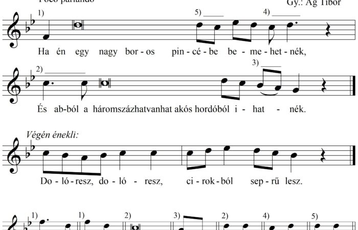 Ha én egy nagy borospincébe bemehetnék (ének, Felnőttek népdalai, tréfás, gúnyos dal)