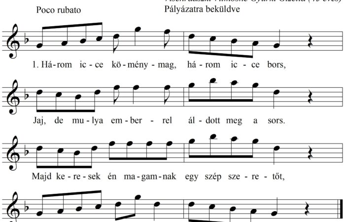 1. Három icce köménymag, három icce bors, Jaj, de mulya emberrel áldott meg a sors. Majd keresek én magamnak egy...