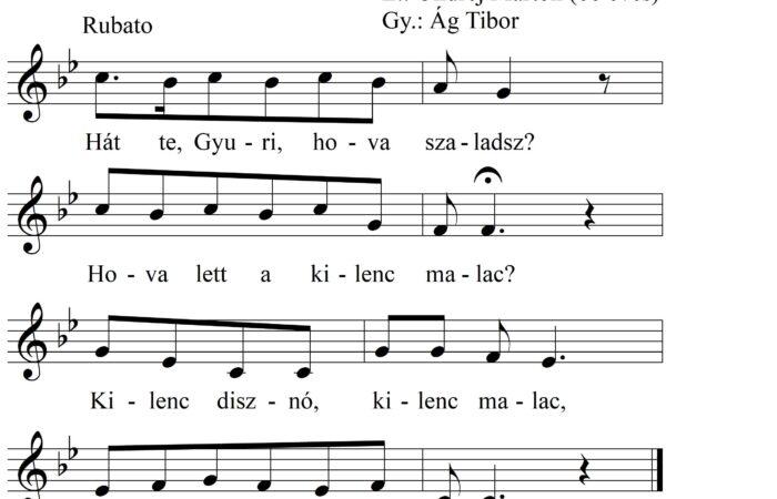 Hát te, Gyuri, hova szaladsz? Hova lett a kilenc malac? Kilenc disznó, kilenc malac, Mind a kilenc majd’ elszaladt.
