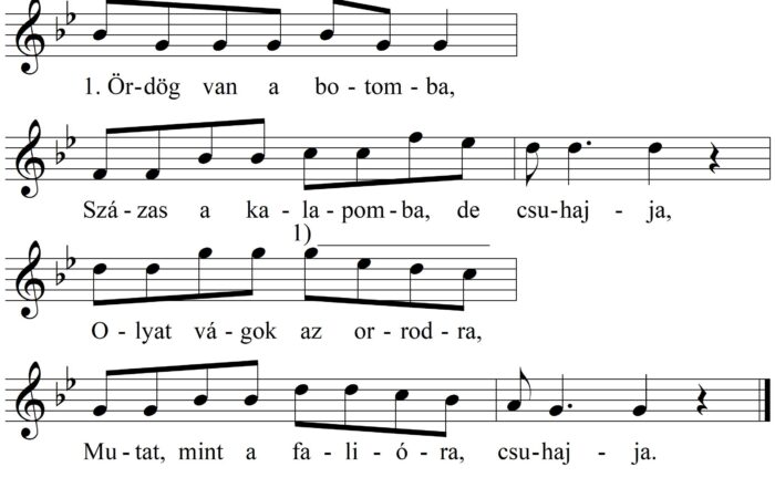 Ördög van a botomba (ének, Felnőttek népdalai, tréfás, gúnyos dal)