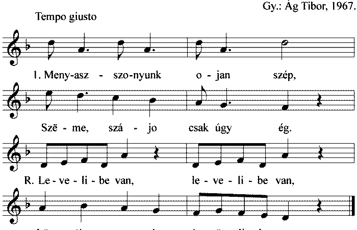 | Műfaj | Felnőttek népdalai / lakodalmas nóta |