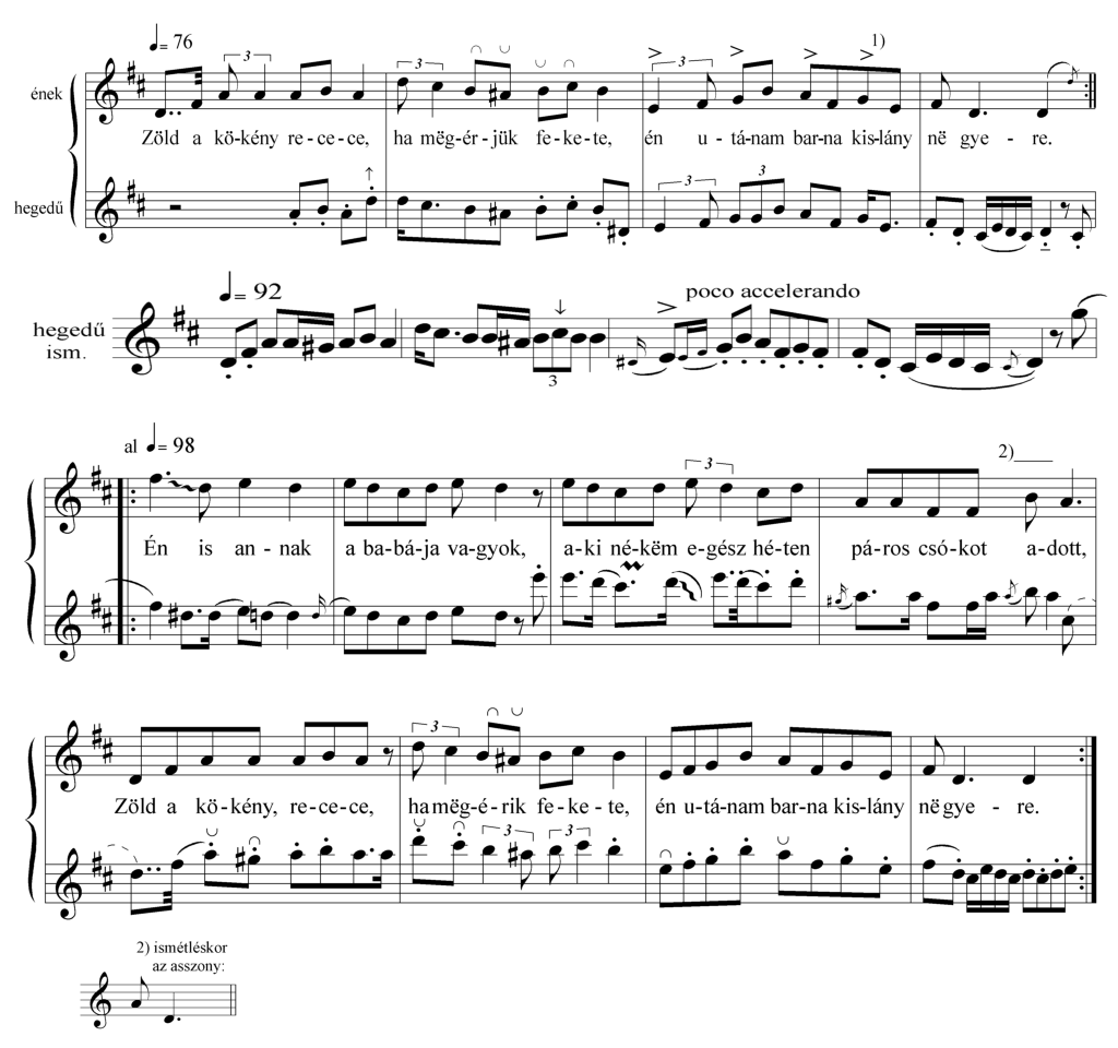 Zöld a kökény recece (ének, hangszeres, alkalomhoz nem kötött dal, Felnőttek népdalai)