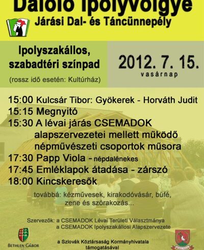 A Csemadok Nógrádi Területi Választmánya, ragyolci alapszervezete, Ragyolc község és a Nógrádi Művelődési Központ július 21-22-én rendezik meg a XII. Ipoly Menti Művészeti Fesztivált Ragyolcon.