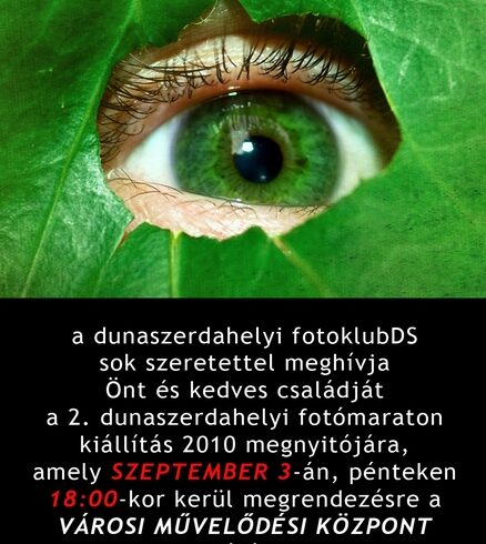 A dunaszerdahelyi FotoklubDS 2. kiállításának megnyitója, 2010. szeptember 3-án, 18.00 órakor a városi művelődési központ aulájában. Fellép a CSAK VAN zenekar. Az érdeklődőket szeretettel várják a rendezők.