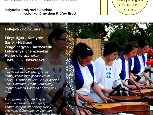 A Csemadok Rimaszombati Területi Választmánya rendezésében, 2010. augusztus 14-én, szombaton, 16.00 órakor, Abafalván.