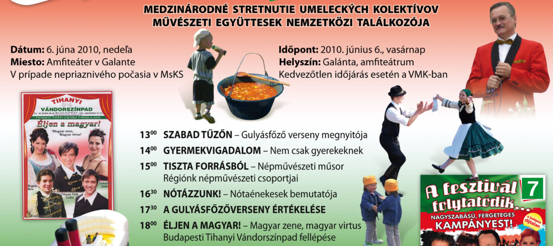 A Csemadok Országos Tanácsa megbízásából a Csemadok Galántai Területi Választmánya, a Csemadok Művelődési Intézete, a Deáki Önkormányzattal és a Csemadok Deáki Alapszervezetével közösen 2010. május 28-30-án, Deákin (Mátyusföld) rendezik.
