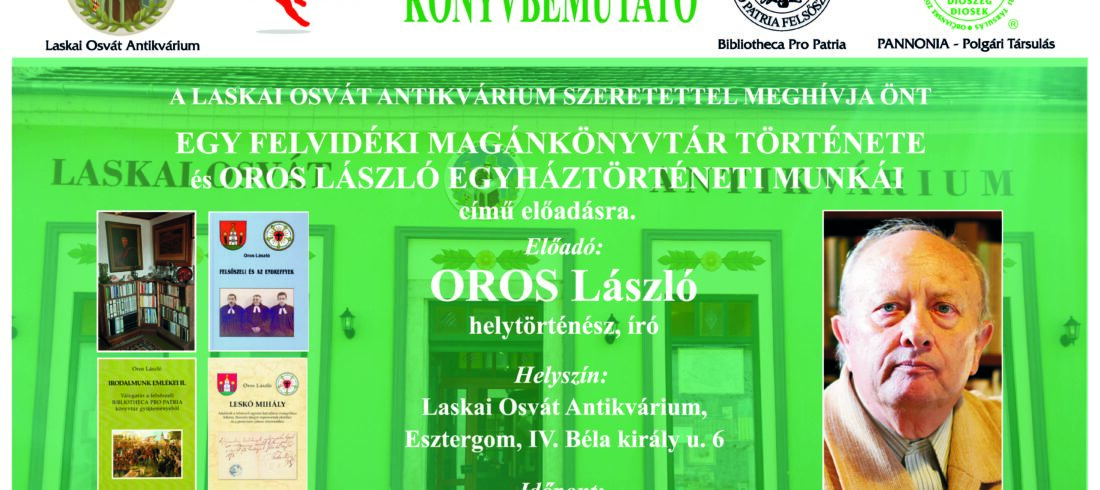 A Laskai Osvát Antikvárium szeretettel meghívja Önt Egy felvidéki magánkönyvtár története és Oros László egyháztörténeti munkái című előadásra. Előadó: OROS László, helytörténész, író Helyszín: Laskai Osvát Antikvárium, Esztergom, IV. Béla […]