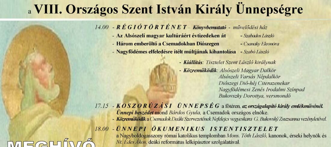 A CSEMADOK Tornaljai Területi Választmánya tisztelettel meghívja Önt és családját a Gaudium régizenei együttes jubileumi hangversenyére. A koncert „Ó, nagy kerek kék ég” címmel, Balassi Bálintra emlékezve dalokkal, versekkel és […]