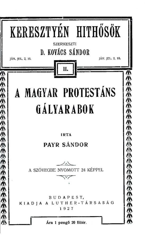 Bevezetés 1 / I. A vallásüldözés I. Lipót korában. Hiteles-e a gályarabok története? 2 / II. A rebellio vagy a religio (lázadás vagy vallás) miatt szenvedtek-e a gályarabok? Mi volt az ürügy és mi volt az üldözés igazi oka és célja? 5 / III. A gyászos évtized kezdete. Öt rendkívüli törvényszék három év alatt 10 / IV. A gályarabok bírái. A vádpontok 18 / V. Wittnyédy István levelei. Hitelesek-e vagy hamisak? A kimondott halálos ítélet 22 / VI. A bűnösség kérdése itthon és a külföldön. Apológiák és újabb vádiratok 26 / VII. Az erősek és a gyengék. Az elitéltek a hazai börtönökben 30 / VIII. A nápolyi út és a gályarabság 33 / IX. A szabadulás és a hazatérés 40 / X. A gályarabok emléke 47