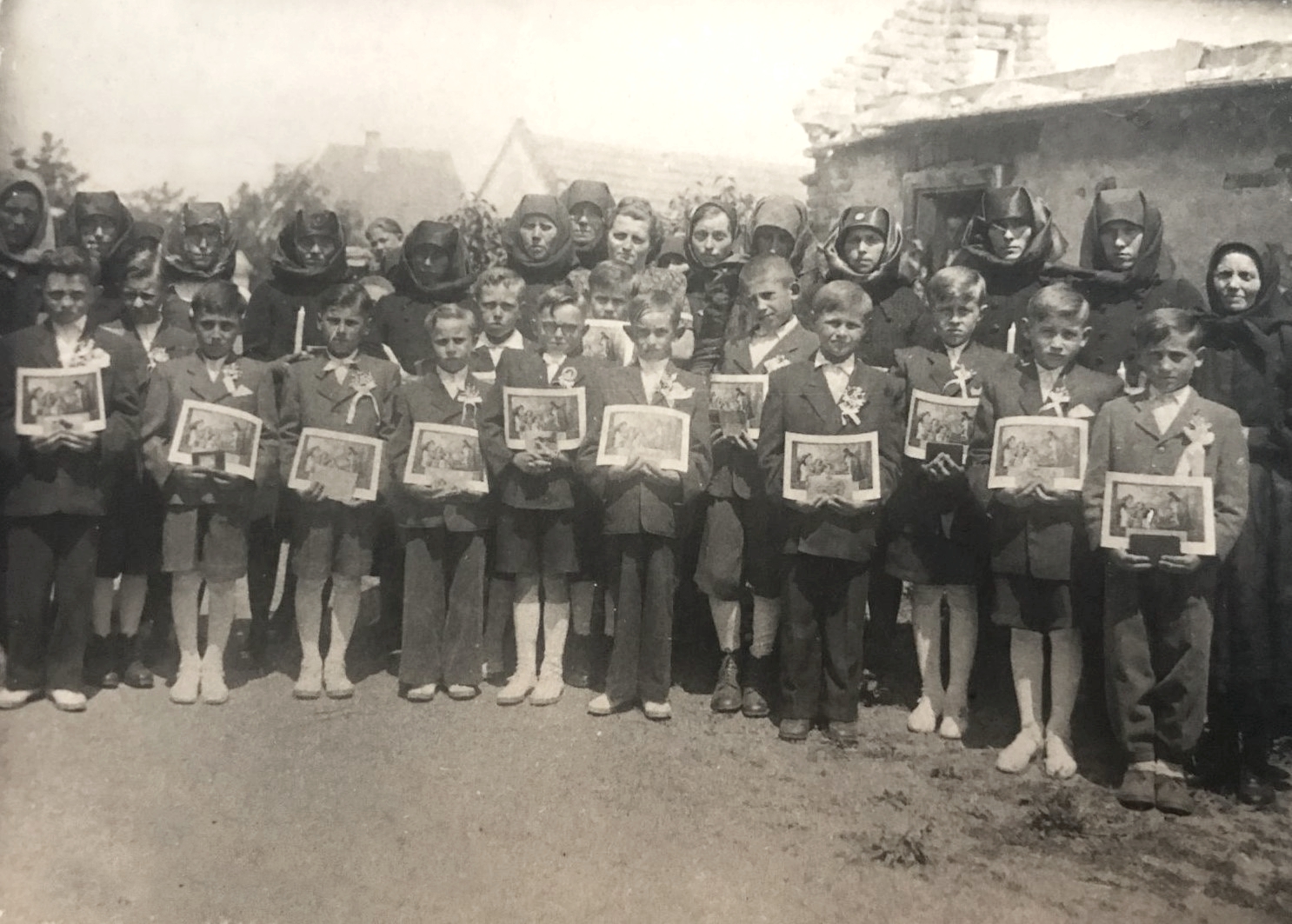 A képen az 1949-es elsőáldozók láthatók, a háttérben még jól láthatók a II. világháború nyomai. Képen látható elsőáldozók és hozzátartozóik: Szalma Ilona, Szalma Dezső, Mocsi Veró, Csókás Sándor, Szőköl Borcsa, Mocsi Örzse, Bréda László, Valent Ilona, Valent Dénes, Nothart Sándor, Brecska Pál, Brecska Mária, Bréda József, Bréda Ilona, Balog Làszló, Balog Teréz, Retkes Mária, Mocsi...