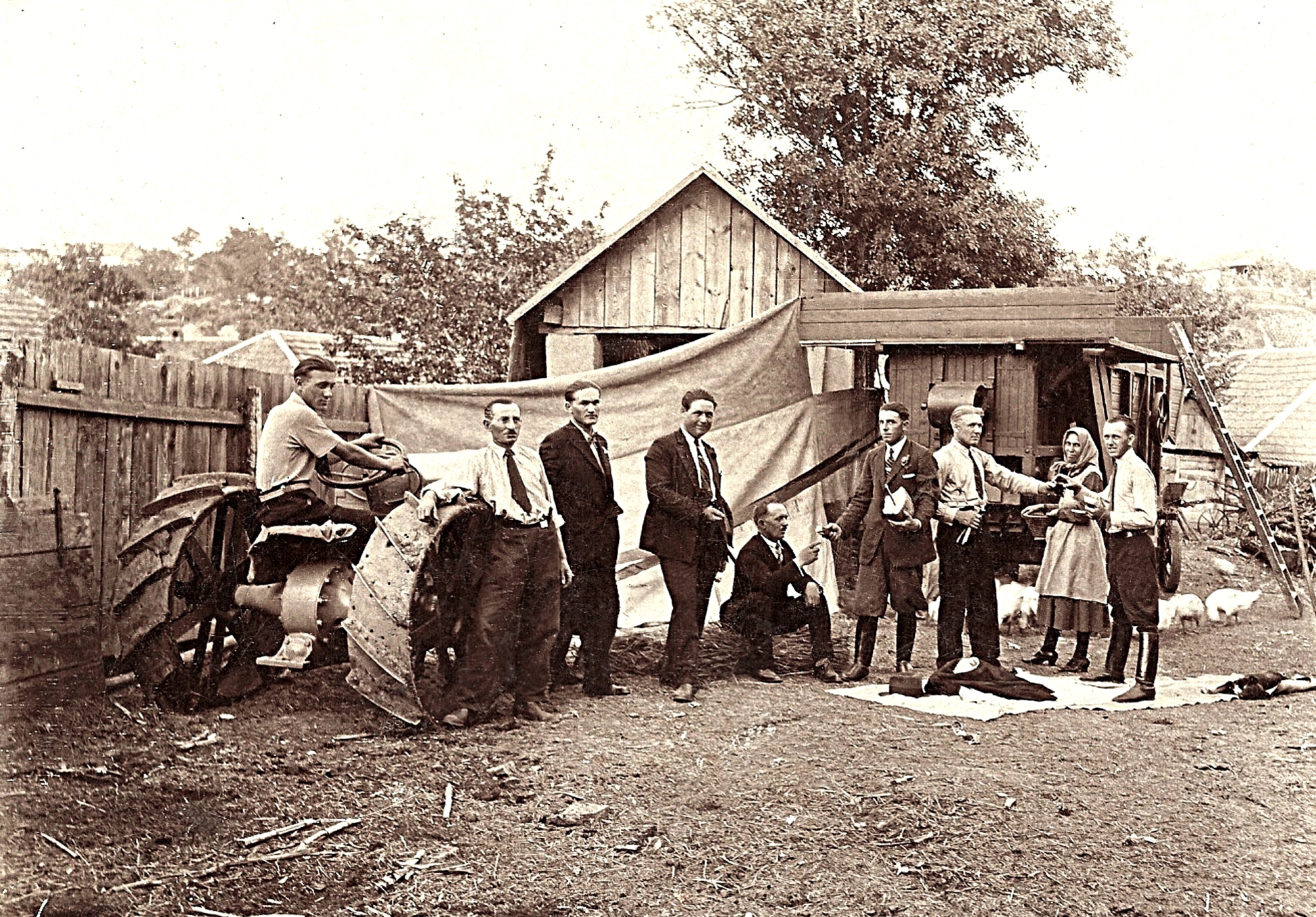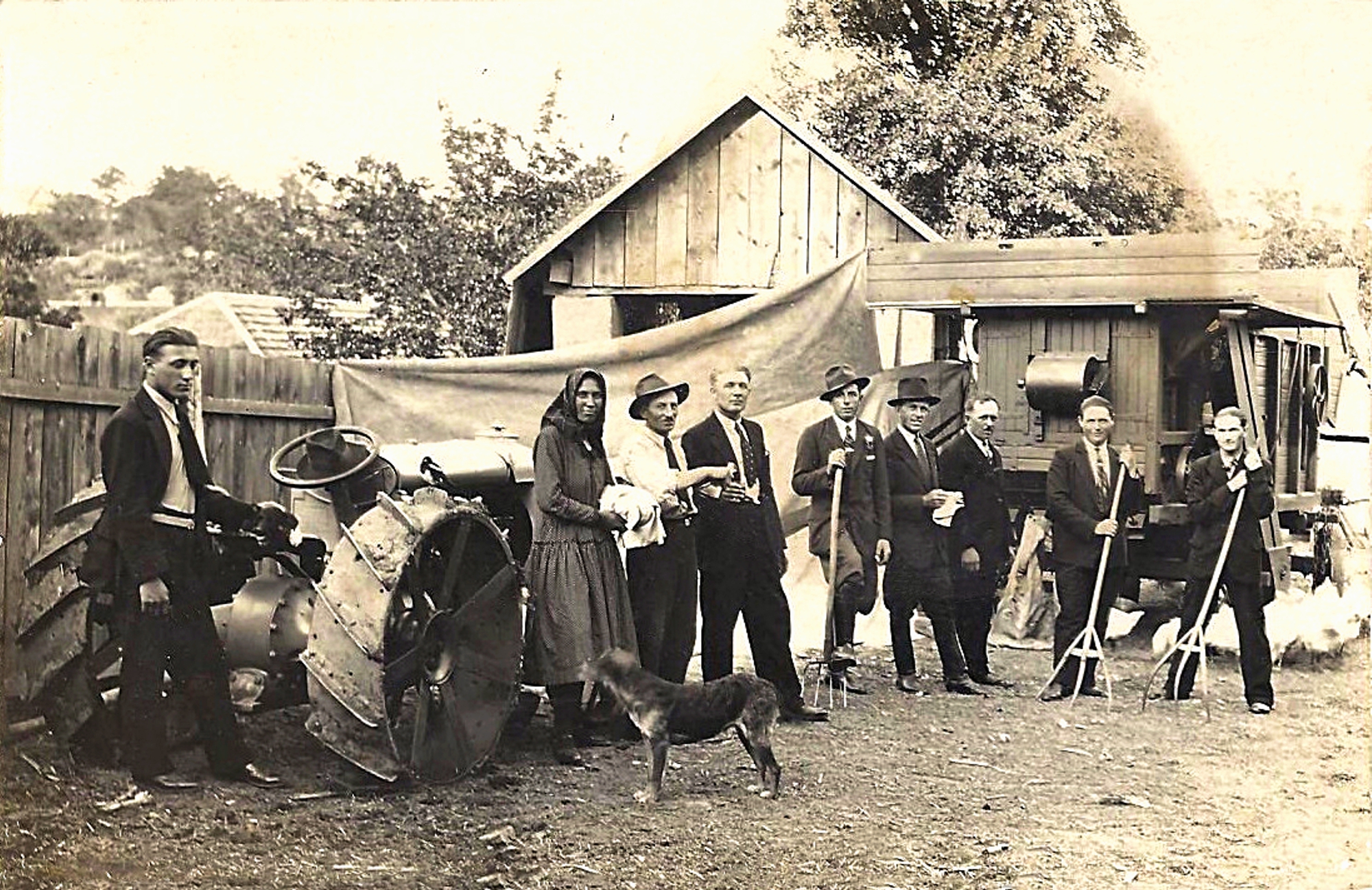 A fényképen vélhetően a traktor gazdái ünneplik a „birtokbavételt”. A traktor és a cséplúőgép között a kifeszített nagyar zészló látható. Henry Ford és fia, Edsel örökre megváltoztatták a mezőgazdasági termelést, amikor 1917-ben megtervezték és árusítani kezdték a Fordson F-Modell nevű traktort. A „szántóföldek T-Modelljének” is becézett gép volt a világ első könnyű és megfizethető traktora....Read More