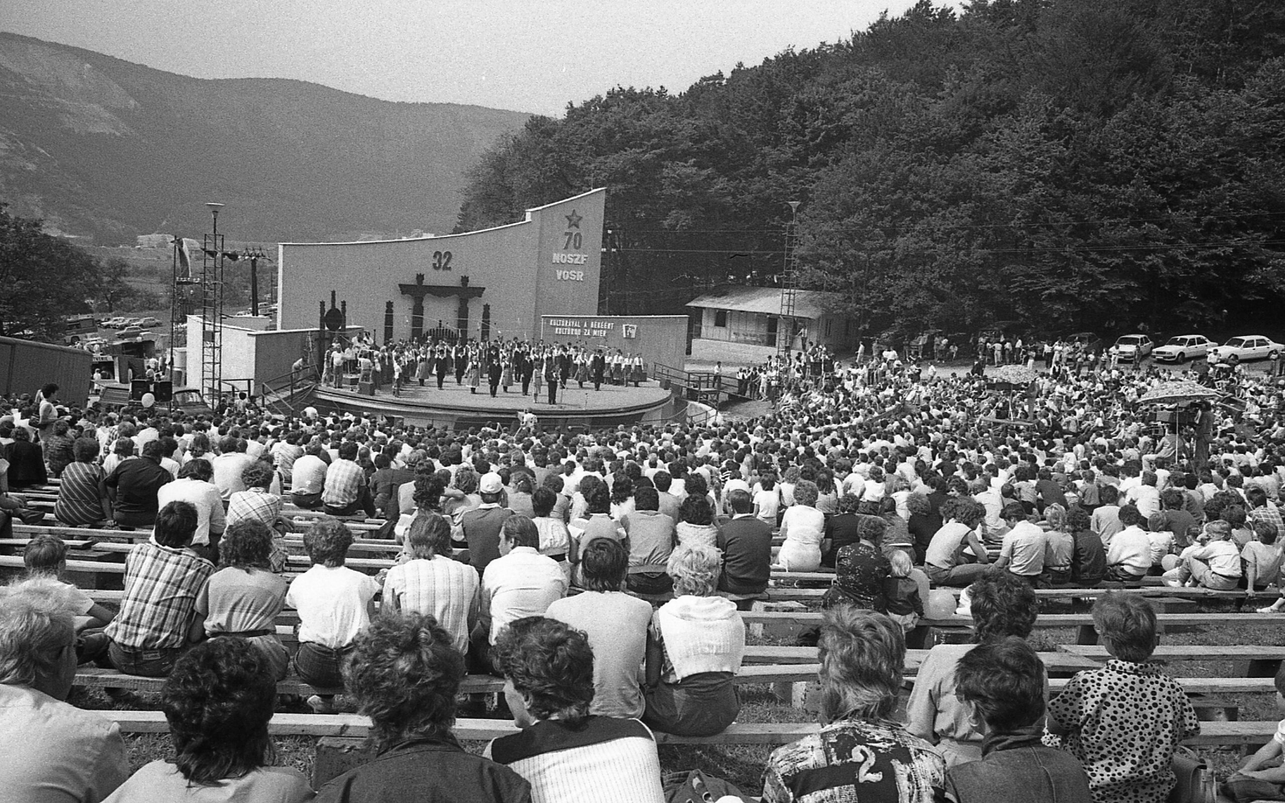 A fotón: Jégh Izabella, Sidó Zoltán. Az ünnepélyen 19 csoport, 665 szereplő, 15.000 néző vett részt. Magyarországi és más vendégegyüttesek az OKÜ-n: Vidróczky néptáncegyüttes, Gyöngyös / Budapest néptáncegyüttes, Budapest / Pektorzin folklóregyüttes, Lengyelország / Szeredno ukrán folklóregyüttes, Vinograd, USZSZK / Zemplín folklóregyüttes, Nagymihályi / Spremberg zenekar, NDK / Hacsek és Sajó: Kibédi Ervin, Keleti Pál, Payer András, Ambrus Kyri,...Read More