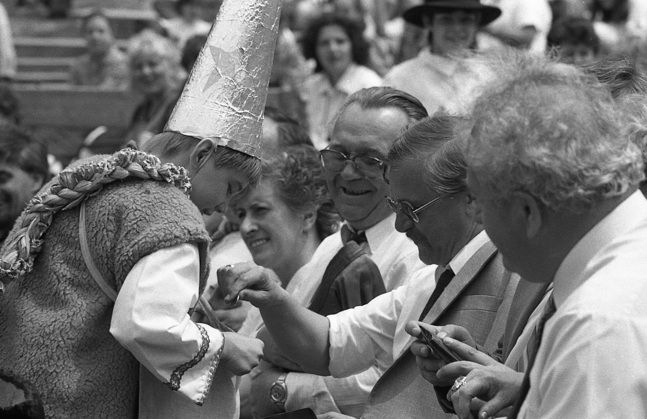 Hangulatkép az ünnepélyről egy cigányprímással 19 csoport, 665 szereplő, 15.000 néző Magyarországi és más vendégegyüttesek az OKÜ-n: Vidróczky néptáncegyüttes, Gyöngyös / Budapest néptáncegyüttes, Budapest / Pektorzin folklóregyüttes, Lengyelország / Szeredno ukrán folklóregyüttes, Vinograd, USZSZK / Zemplín folklóregyüttes, Nagymihályi / Spremberg zenekar, NDK / Hacsek és Sajó: Kibédi Ervin, Keleti Pál, Payer András, Ambrus Kyri, Körmendi Pál és Galambos István, BudapestRead More