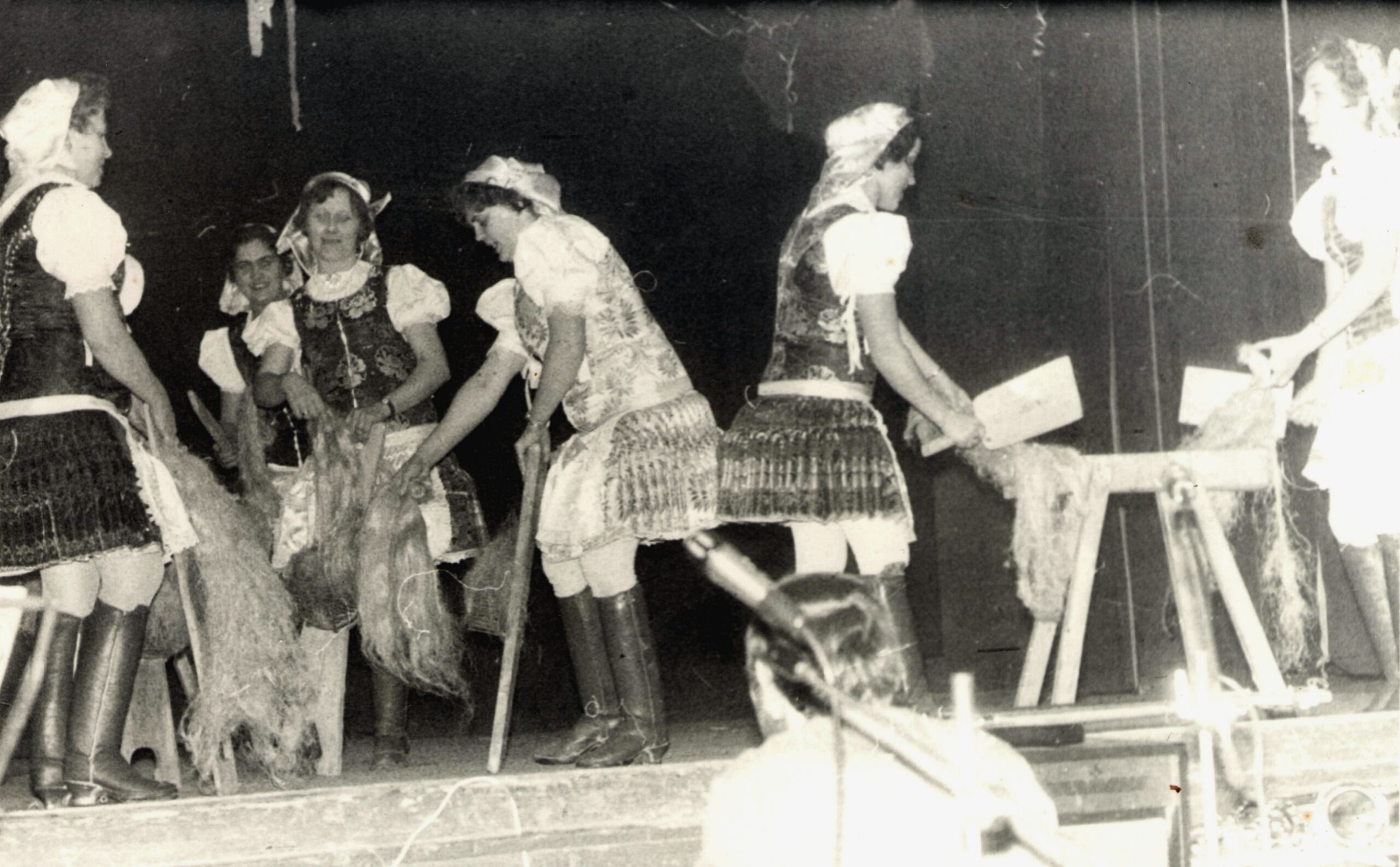 A nemesradnóti tánccsoport vezetője Szakall Géza iskolaigazgató volt. A fénykép a zselízi vendégszereplésük alkalmával készült. A tagok: Farkas Katalin, Pozor István, Dobos Géza, Hencz László, Sebők Lenke, Bodon Ilona, Balyo Ilona, Pósa Lajos, Bodon Márta, Pósa Zoltán.Read More