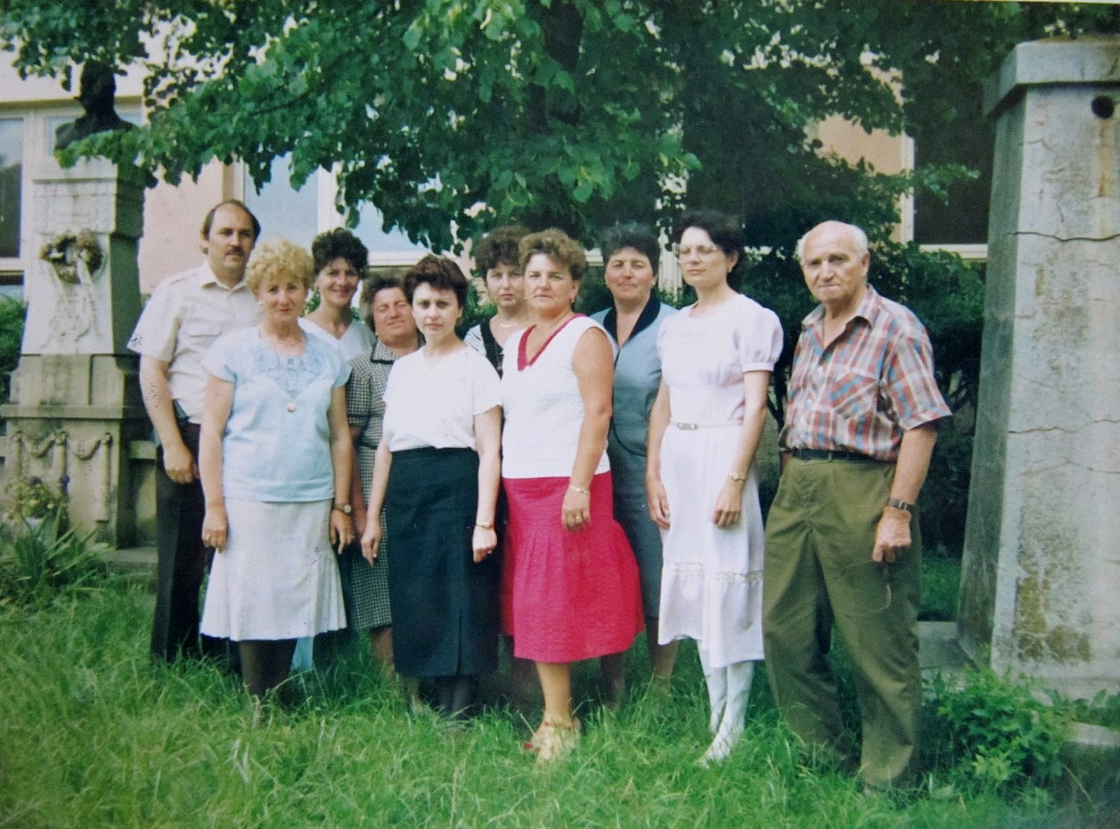 Az alapiskola személyzete az iskola előtt minden tanévben lefényképezkedett. 1991-ben a képen balról Vaskői Károly akkori iskolaigazgató, Bodon Ágnes, Miko Margit, Barát Borbála, Pósa Éva – előttük Ferencz Katalin, Simon Rozália, Simon Jolán, Nagypál Gabriella, Révay Géza. Az iskola előtt 2008-ban végeztek tereprendezést, kiszedték a kerítést, és elbontották a Pósa-ereklyezászló tartóját, melyet zászlótartónak építettek 1939-ben....Read More