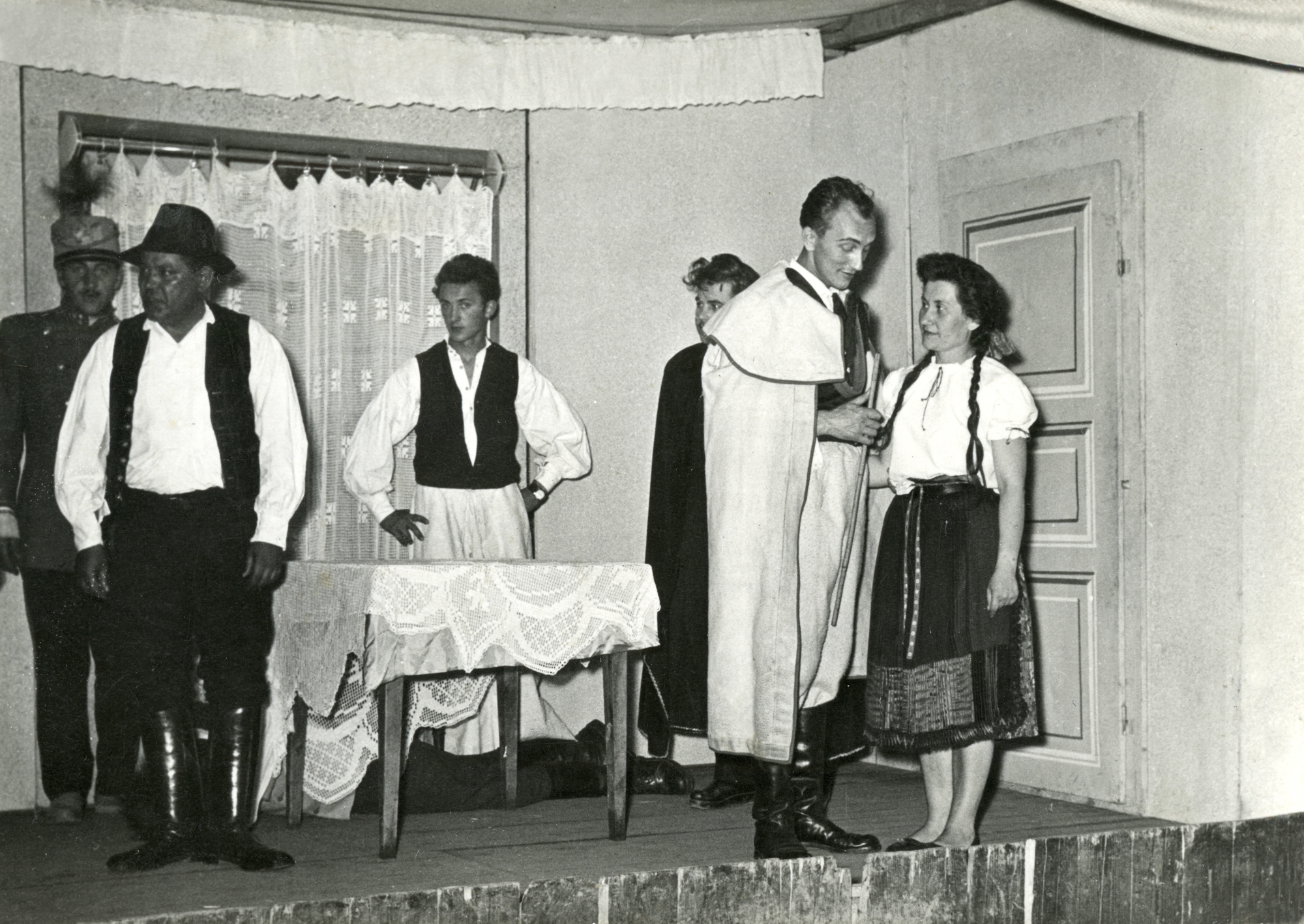 A darab címe Őrmester úr jelentem alássan, amelyet 1939-ben háromszor mutattak be telt ház előtt Ógyallán. Zenés-táncos operett volt, „saját rendezésben adtunk elő” – írja Chalupeczky J. (A képen látható is a széken ülve papírral a kezében. A fotó a Csemadok gyűjteményében is megtalálható – Ihász Zs. adománya.)Read More