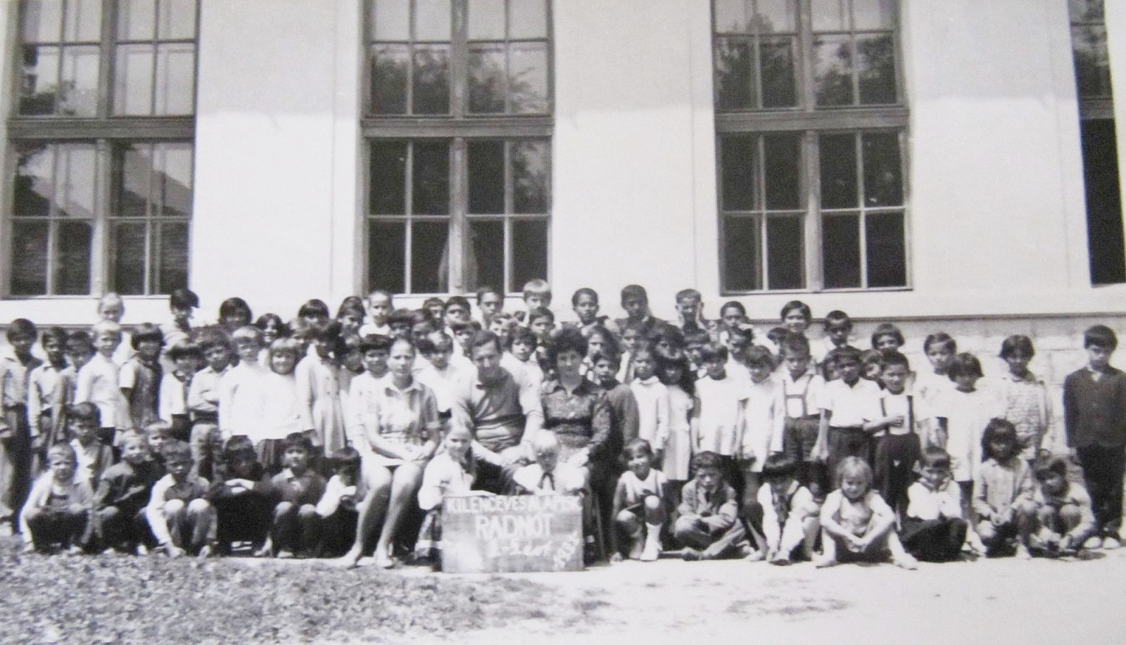 A nemesradnóti alapiskola II. évfolyamos diákjai és tanárai az iskola előtt az 1989/90-es tanévben. Ferencz Katalin több mint 30 évet dolgozott itt.Read More