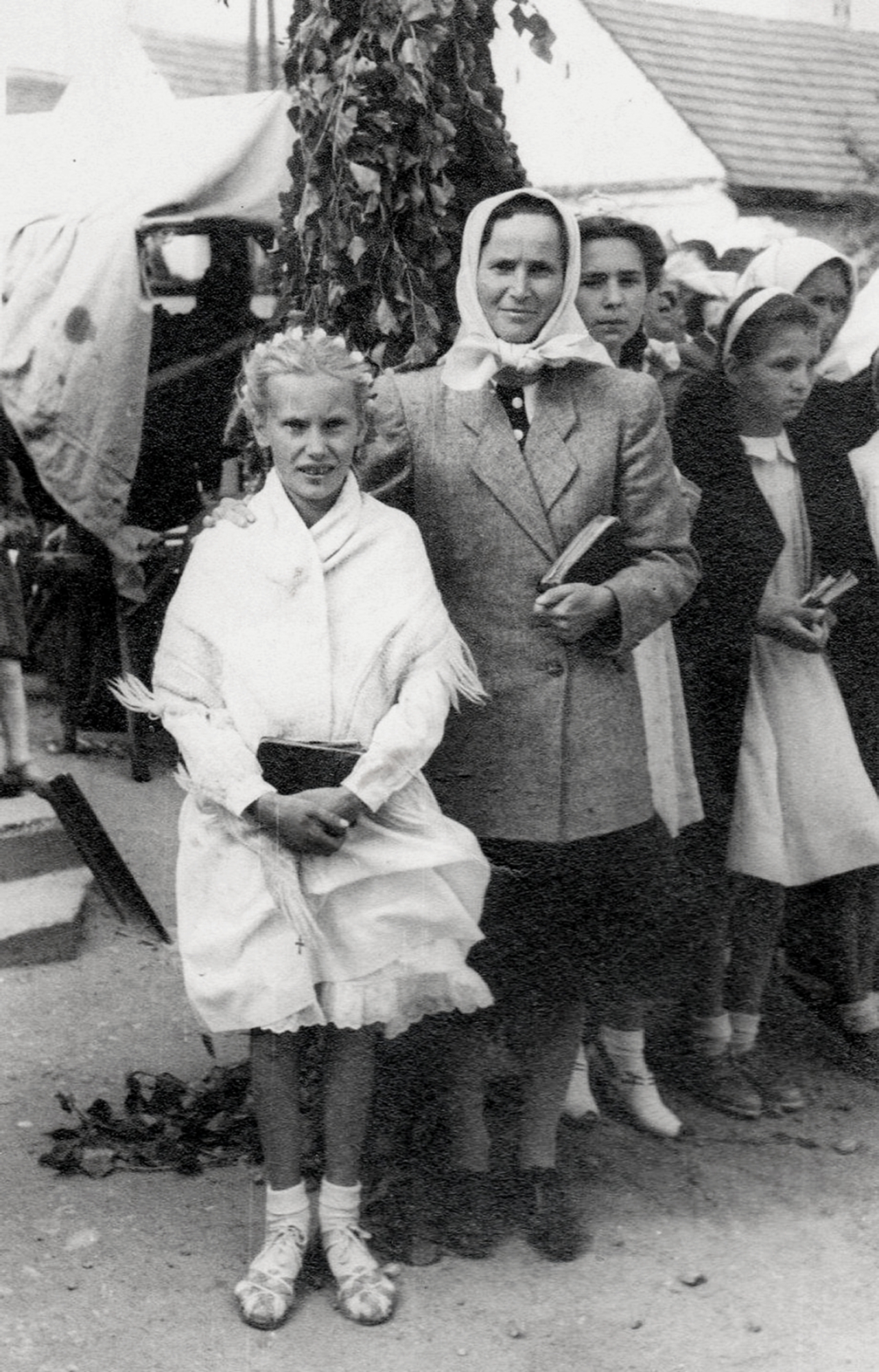 Vága, 1940-es évek közepén Az 1936-os születésű, fehér ruhás lány, Jalsovszky Mária Zsuzsanna (Törökné), mellette a keresztanyja, Kubica Vilma néni.Read More