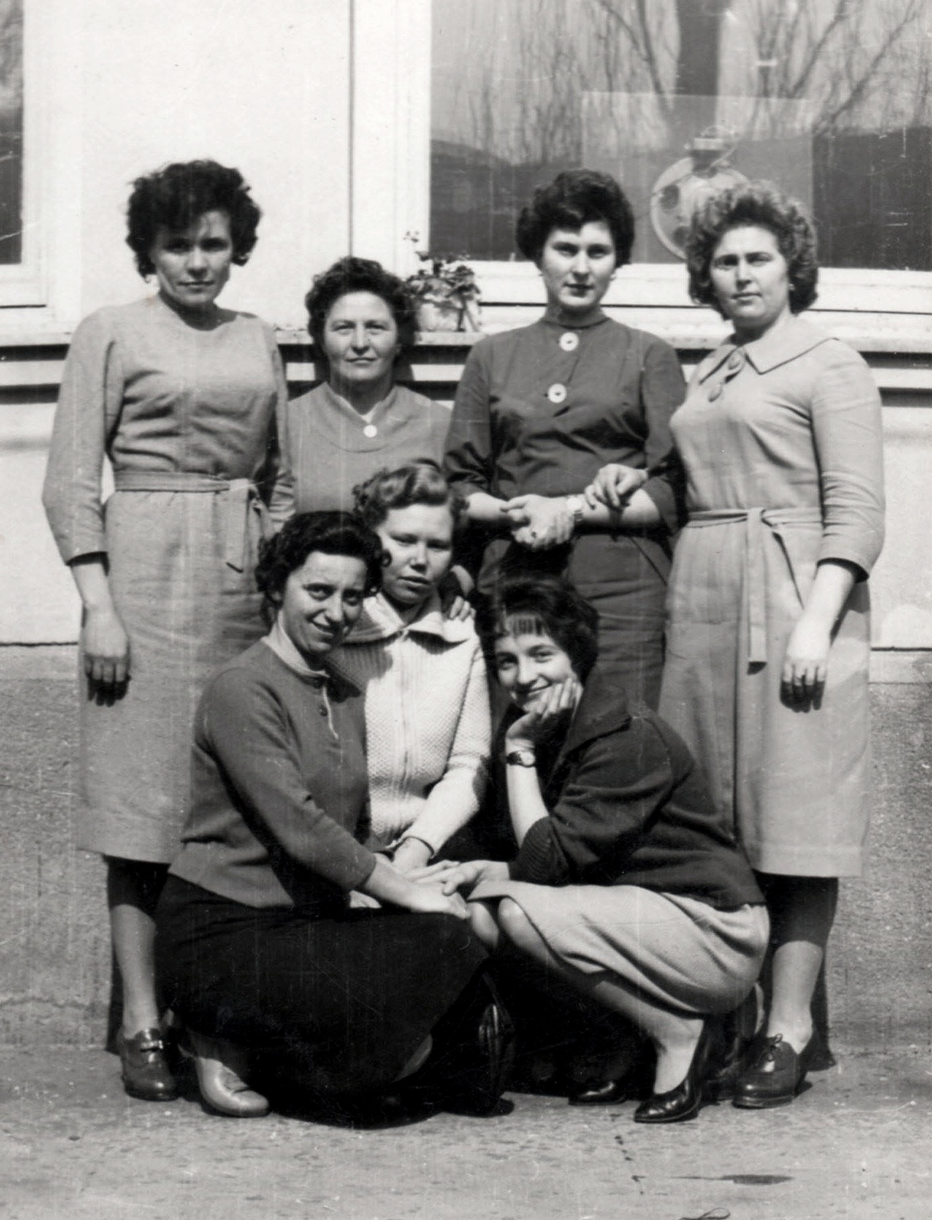 Vága, 1970-es években Állnak balról jobbra: ?, Bakó Anna (született: Józsa), ?, ?. Guggolnak balról jobbra: ?, Czakó Etela (született: Kamenár), ?.Read More