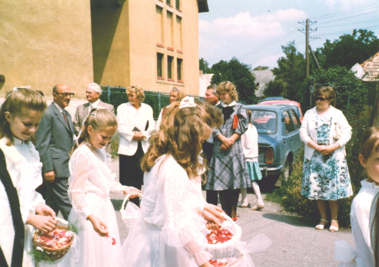 Bal oldalt hátul a szemüveges Chalupeczky József, jobb oldalt Asztalos Erzsébet hitoktató, aki az ógyallai magyar iskolában (rövid ideig?) tanított hittant.Read More
