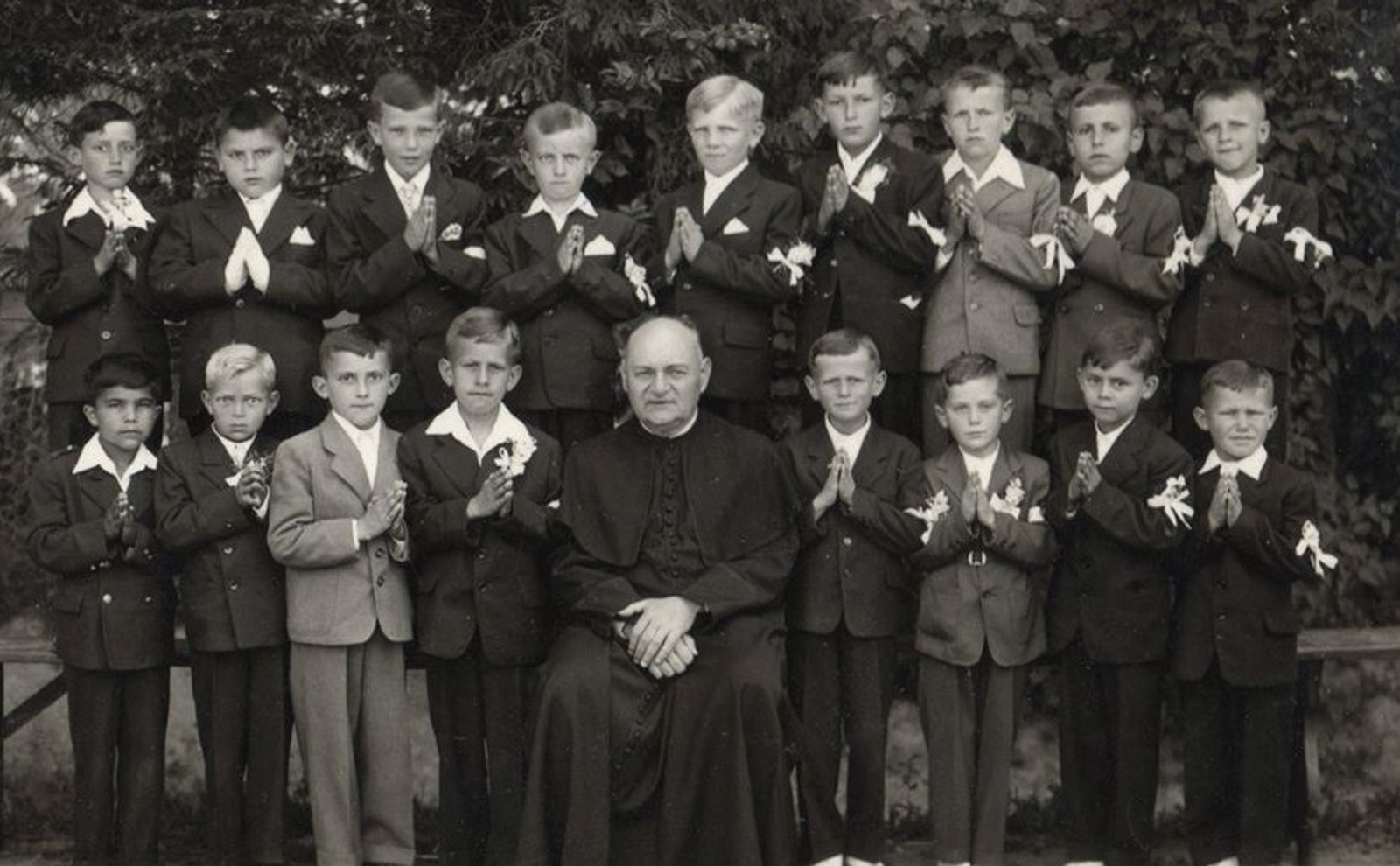 Vága, 1950-es évek második felében Első szentáldozók, akik 1950-ben születtek. Hátsó sor, balról jobbra: Novoszád József, Puskás Ferenc, Forró Jenő, Szabó László, Zsigó Ernő, Forró Tibor, Takács Sándor, Gyevát György, Zsigó Ferenc. Középső sor, balról jobbra: Kamenár István, Kamenár József, Szűcs Árpád, Bogács László, Wilde József (plébános), Szalay Nándor, Renács József, Gyeváth Zoltán, Klaszta László....Read More