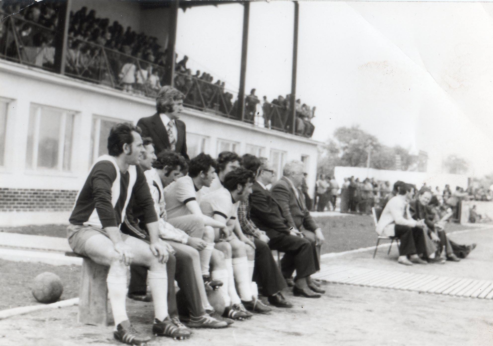 Vága, 1970-es évek végén A hazaiak cserepadján, akik figyelik a mérkőzést: Recht Miklós (balról), Lulovics Zoltán, Bugyinszky László, Takács István… Mögöttük áll, az akkori felnőtt labdarúgó csapat edzője, Pšenko Viliam.Read More