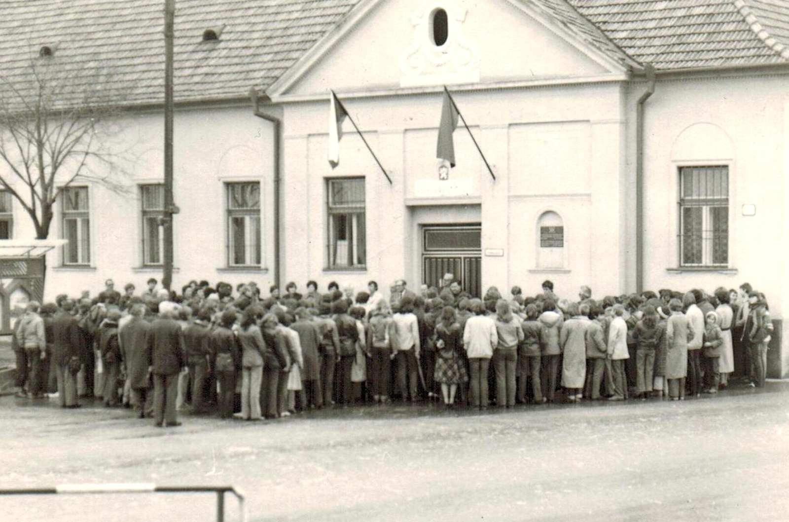 Felsőszelit 1945. március 31-én, húsvét szombatján érte el az orosz front, s kiűzték a németeket. Ez a kép 1982. március 31-én készült a községháza előtt. Az iskolások és a képviselők hallgatják az elnök, Pónya Árpád ünnepi beszédét. A bejárat melletti emléktábla alá koszorút helyeztek el.Read More