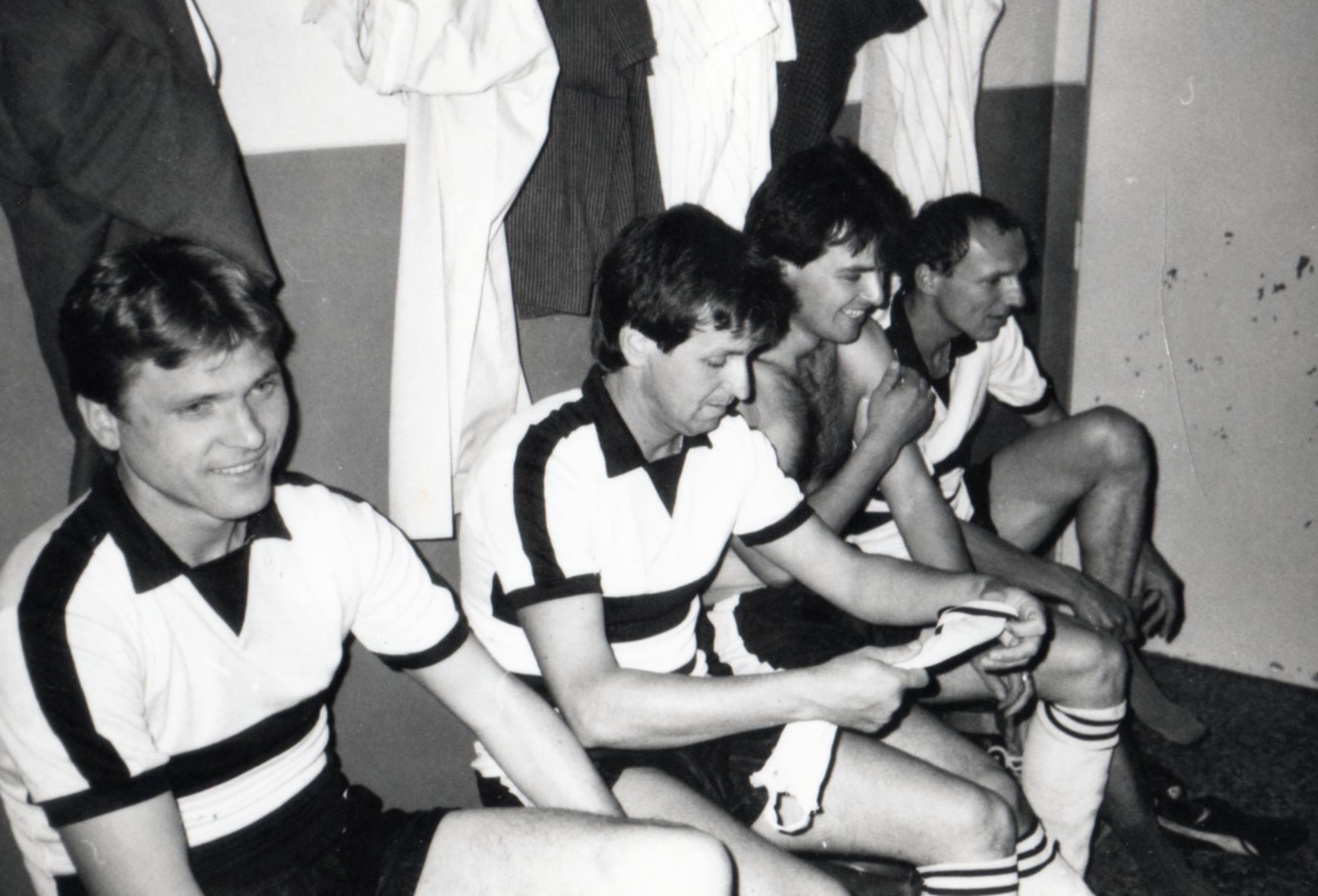 Vága, 1980-as évek második felében A vágai felnőtt csapat focistái az öltözőben, balról jobbra: Peter Radošovský (szeredi), Horváth Jenő, Mikula István, Lulovics Miroslav.Read More