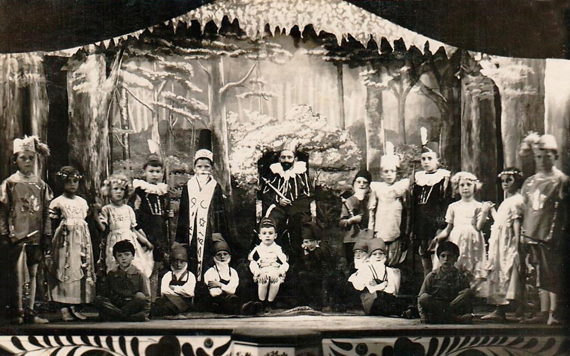 A Csemadok 30. évfordulóján a műsor végén az összes szereplő közösen énekelt a színpadon. A díszlet festett motívum szalagjai között a szervezet neve és a 30-as szám látható.Read More