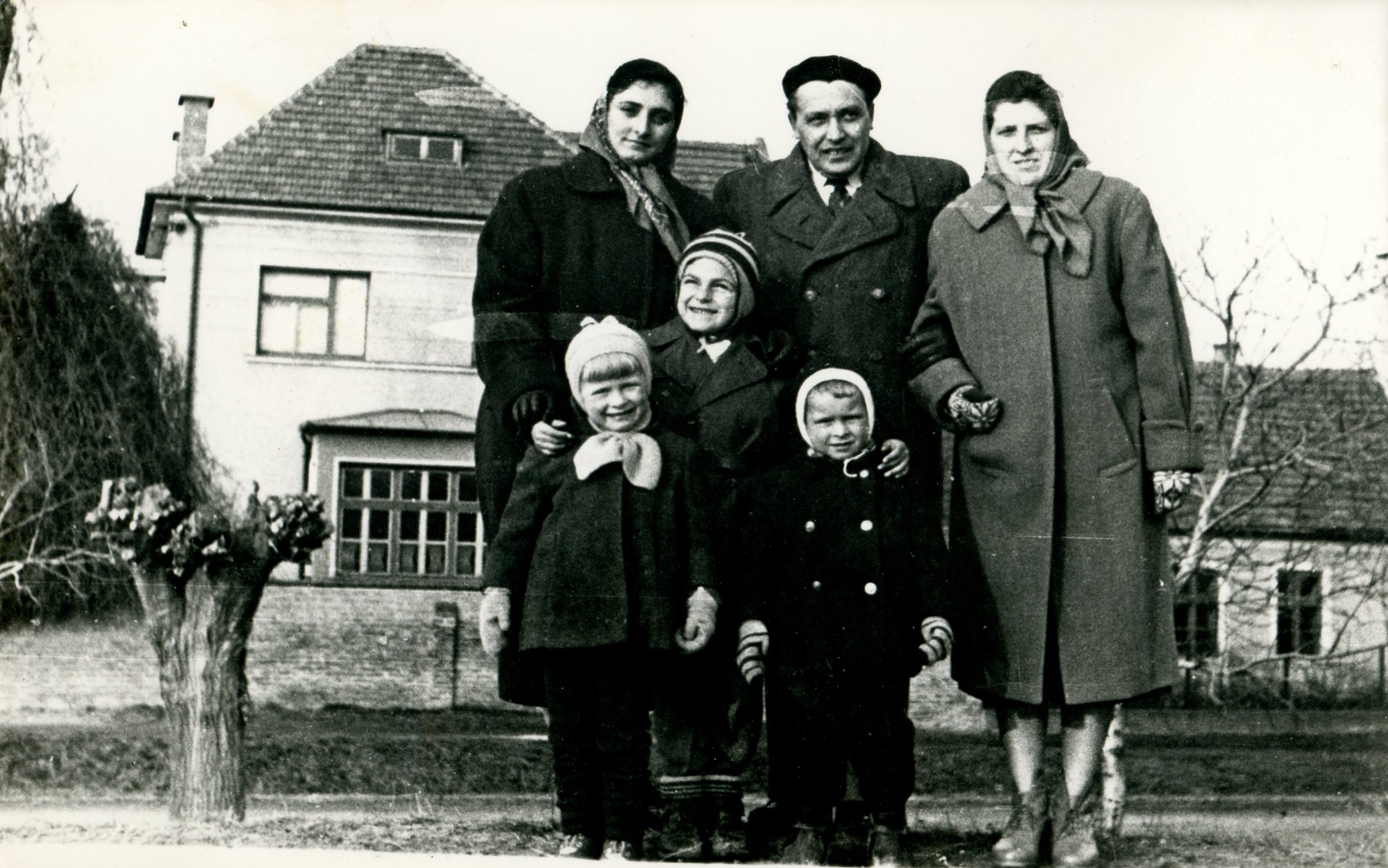 A Kuzmik kastély előtt, Psenák Sabla Irén, Polozsányi József („bótos” volt, Veszna volt a boltja) Kácser Magda, gyerekek balról Kácser Magda, Polozsányi Dodi, Kácser Stano, 1958-ban.Read More