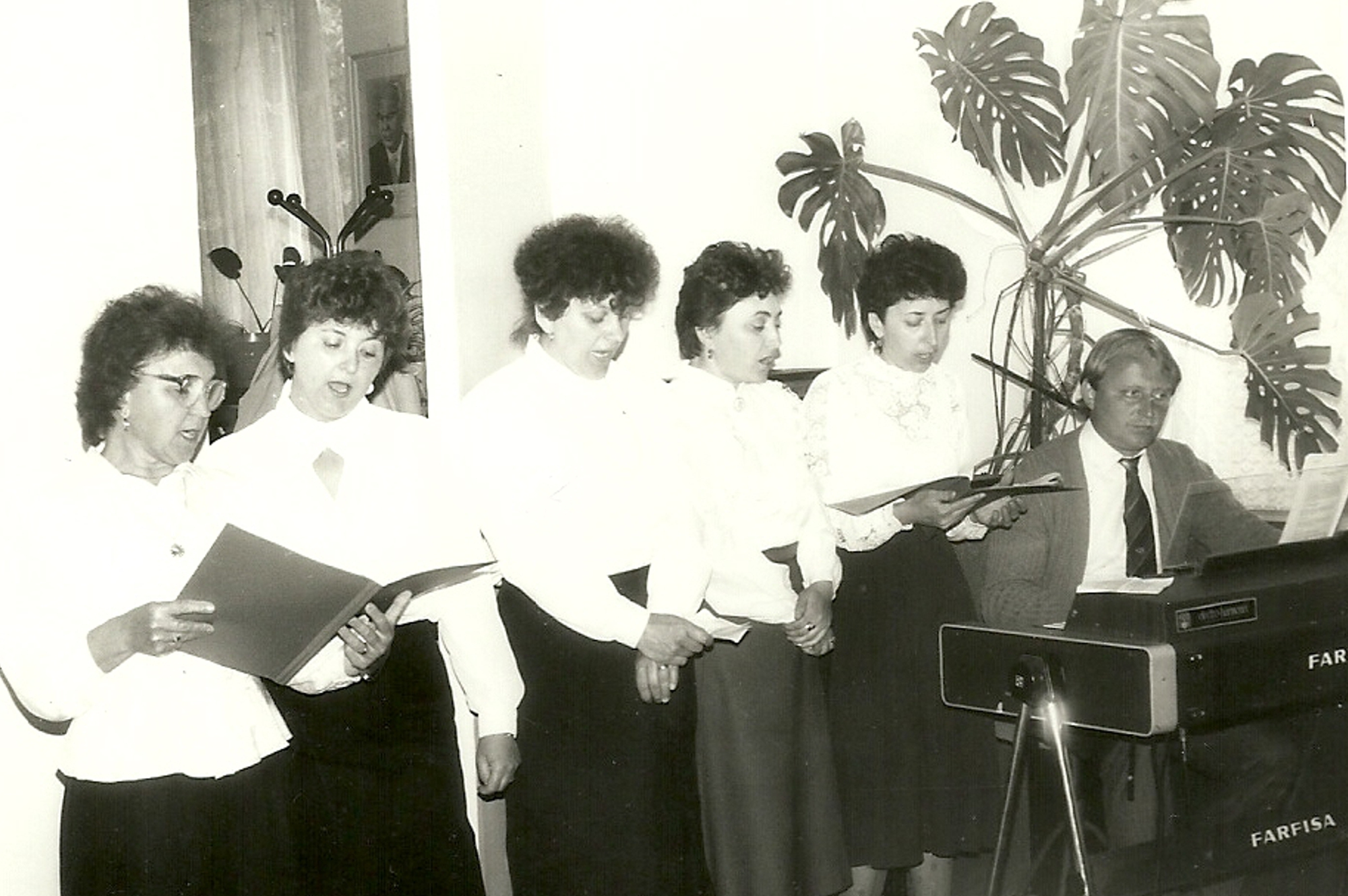 Vága, 1980-as évek elején Kultúrház színpadán a szakácsnők és a felszolgálók, valamelyik lakodalomban. Állnak balról jobbra: ?, Gyevát Valéria (született: Forró), ?, Forró Teréz (született: Szabó), Károly Edit (született: Karácsony), Boledovics Rozália (született: Józsa), Zsigó Ilona (született: Forró), Zsigó Margit (született: Szabó), Simkó Mária (született: Szabó), Nagy Vilmos. Guggolnak balról jobbra: Lelovics Ildikó (Forgácsné), Forró...Read More
