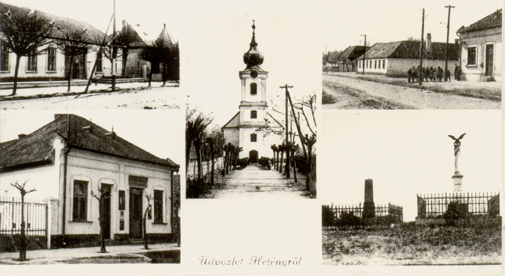 A képeslapra a fényképeket Pintér Mihály, hetényi kereskedő – fűszeres és hentes készíttette. Monotory György, Bubapest, IX. Lónyi u. 12 cím alatt lakó fényképész fejezte be a munkálatokat. A kép közepén az 1782-ben épült református templom, a baloldali felső sarokban a községháza és az 1931-ben épült új paplak a templomúttal. Balra lent látható a képeslap megrendelőjének...Read More