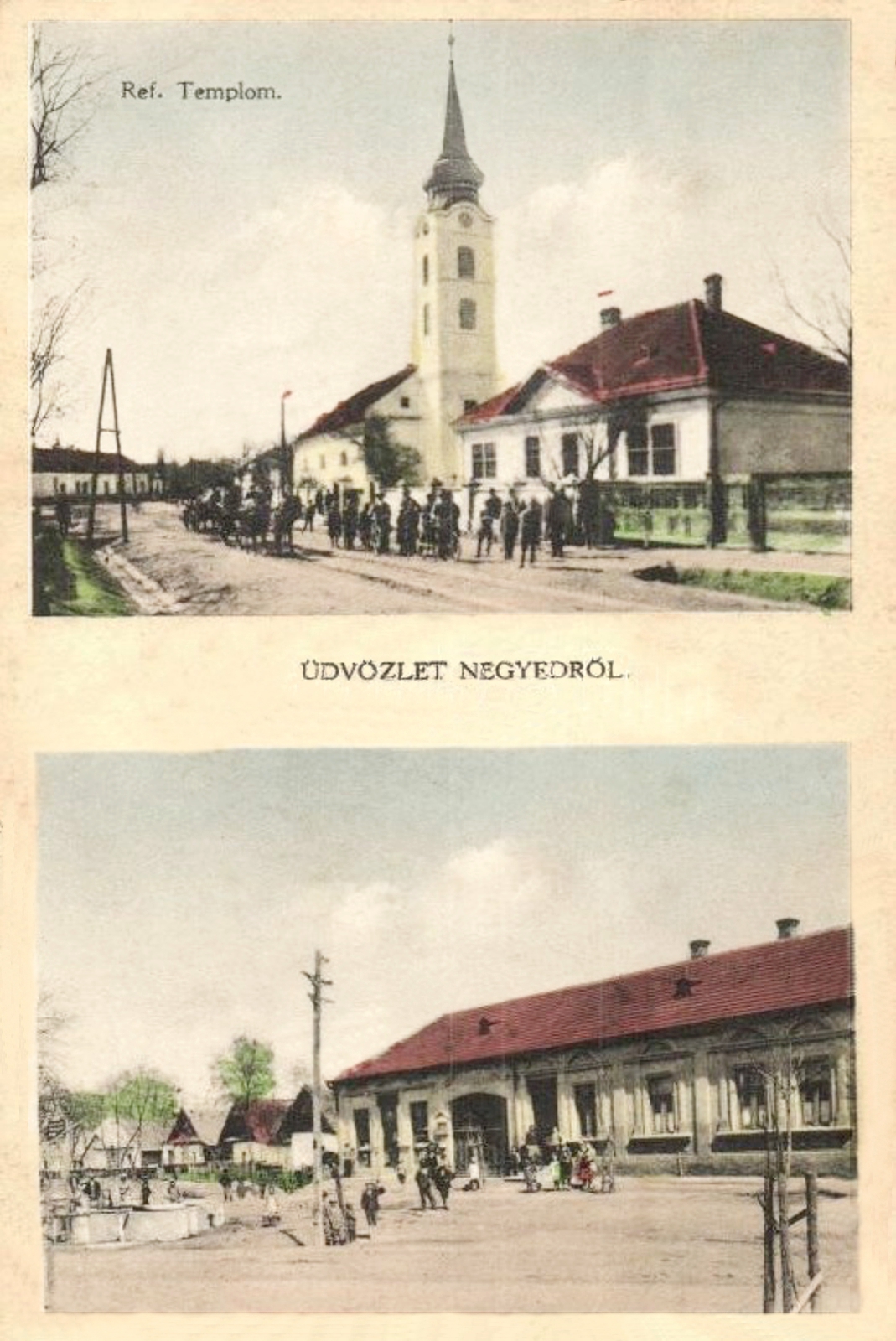 A képen a község főterén található Korona nagyvendéglő, a vasútállomás épülete és a római katolikus templom látható a fő utcáról nézve – színezett változat.Read More
