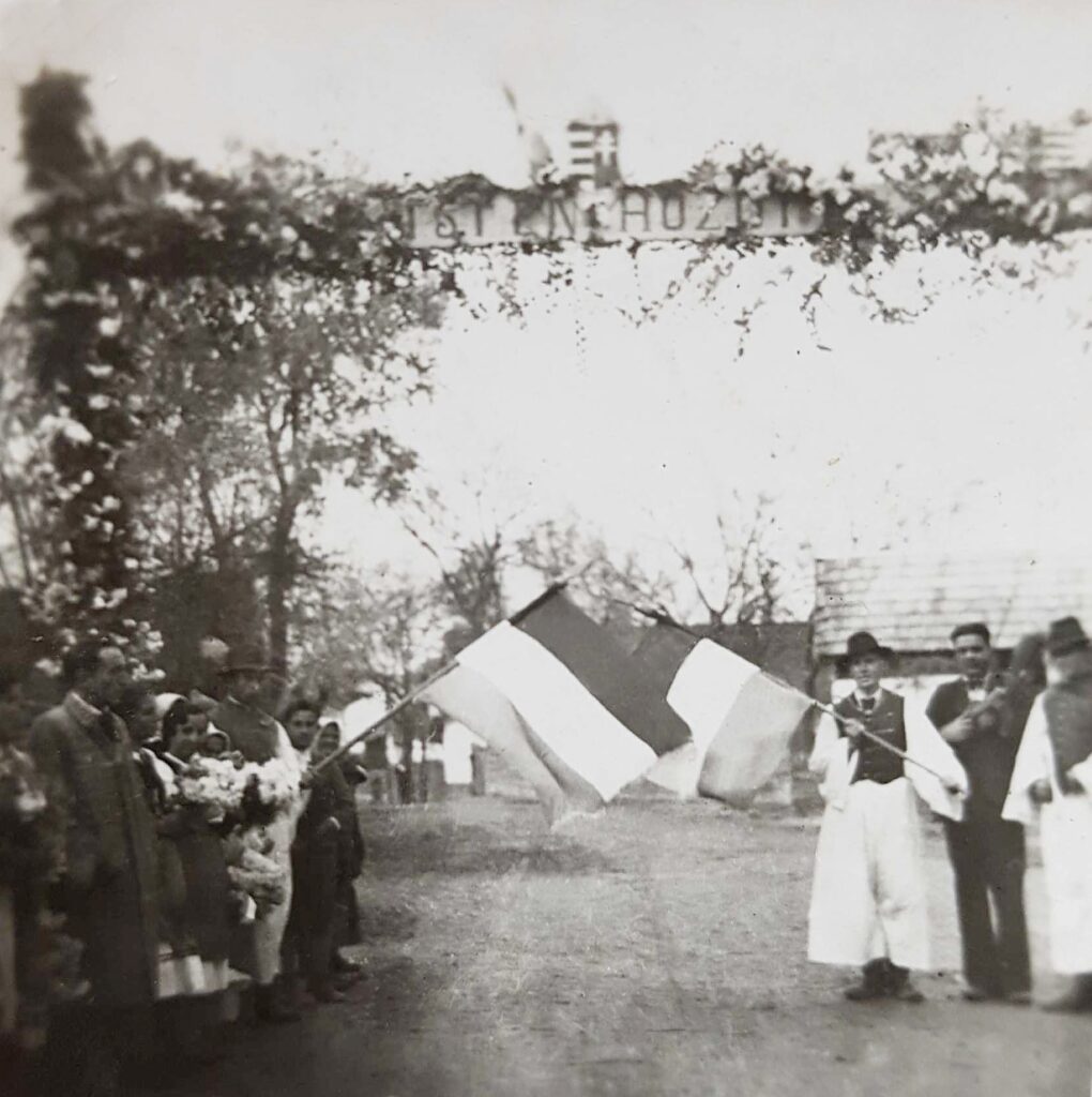 Jobbról Mikóczi József, kezében a magyar zászlóval, a fotót beküldő Molnár Attila nagyapja.