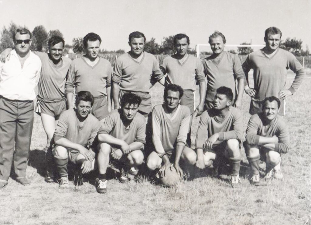 A vágai focisták állnak, balról jobbra: Bugyinszky István (edző), Kozmér Sándor (hátvéd), Hulák Jenő (csatár), Farkas László (középpályás), Zsigó Lajos (csatár), Zsákovics István (középpályás), Karácsony István (kapus, de mezőnyjátékos is).
