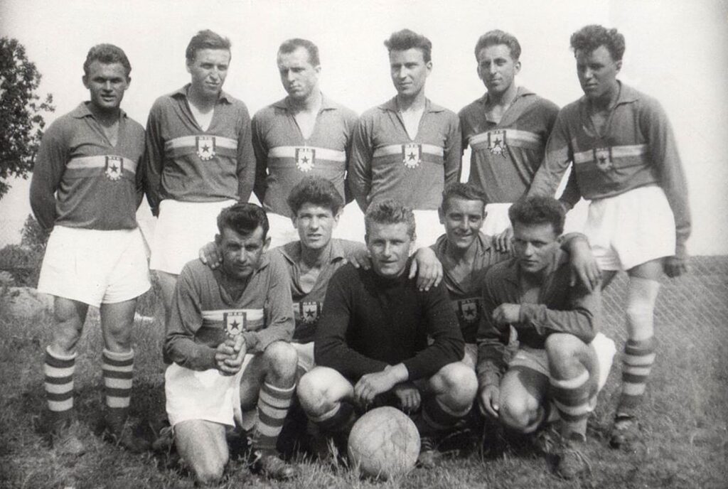 Állnak balról jobbra: Zsigó Tibor, Pásztor Imre (csatár, és középpályás is), Forró László (hátvéd), Hulák Ernő (csatár), Knézel József (hátvéd), Farkas László (középpályás).