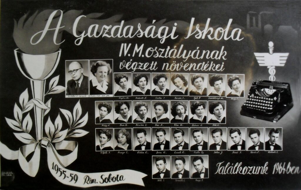A Gazdasági Iskola IV. M osztályának végzett növendékei (Rimaszombat, 1955-1959). A fényképen Nemesradnótból Pósa Klára, Pósa Magda és Nagypál Éva látható.