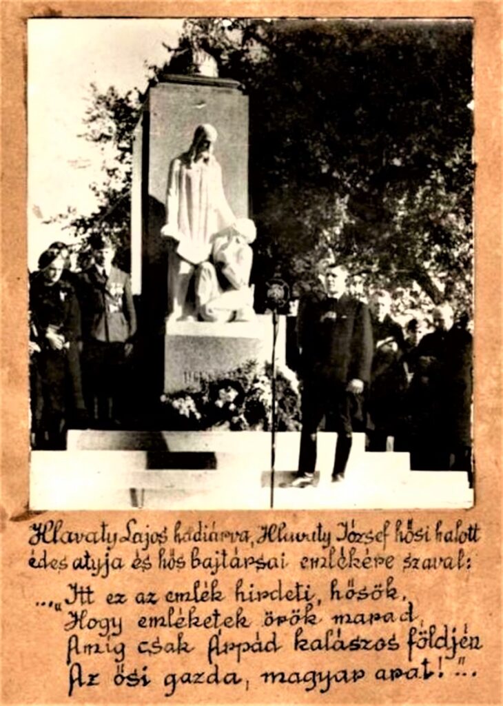 Hlavaty Lajos hadiárva Hlavaty József hősi halott édesatyja és hős bajtársai emlékére szaval,