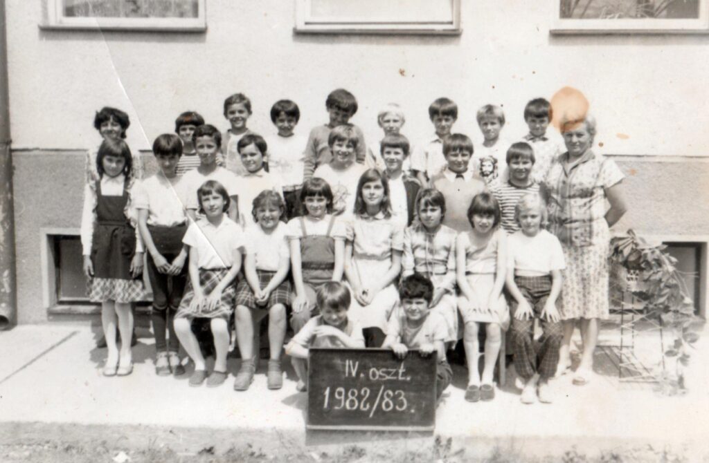 Előttük állnak, balról jobbra: Zsigó Renata, Knézel Andrea, Knézel Milos, Kotrba Norbert, Práger János, Vedrődi Péter, Farkas Marian, Cakó Lubomír, Racskó-Horváth Éva (tanítónő).