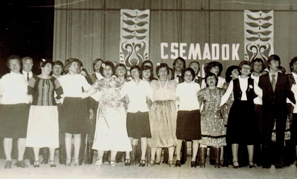 A Csemadok 30. évfordulóján a műsor végén az összes szereplő közösen énekelt a színpadon. A díszlet festett motívum szalagjai között a szervezet neve és a 30-as szám látható.