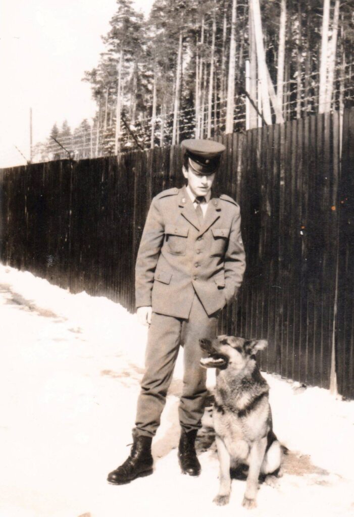 Varga Péter (határvadász) és a Fork nevű kutyája, a Dél-csehországi Rapšach falucska kaszárnyájában.