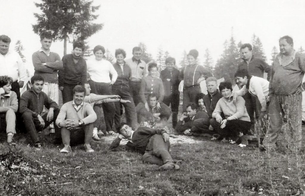 Egy régi kiránduláson készült fotó, az 1960-as évekből, amin a vágai felnőtt labdarúgó csapat tagjai és a kedveseik, hozzátartozóik láthatóak.