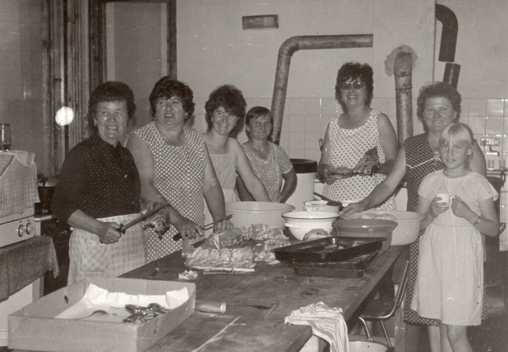 A kultúrház konyhájában a szakácsnők, valamelyik lakodalomban