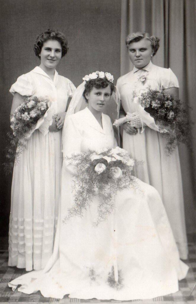 Balról jobbra: Forró Margit (Farkasné), Zsigó Margit (született: Kiss, a menyasszony), Kotrba Viola (Somogyiné).