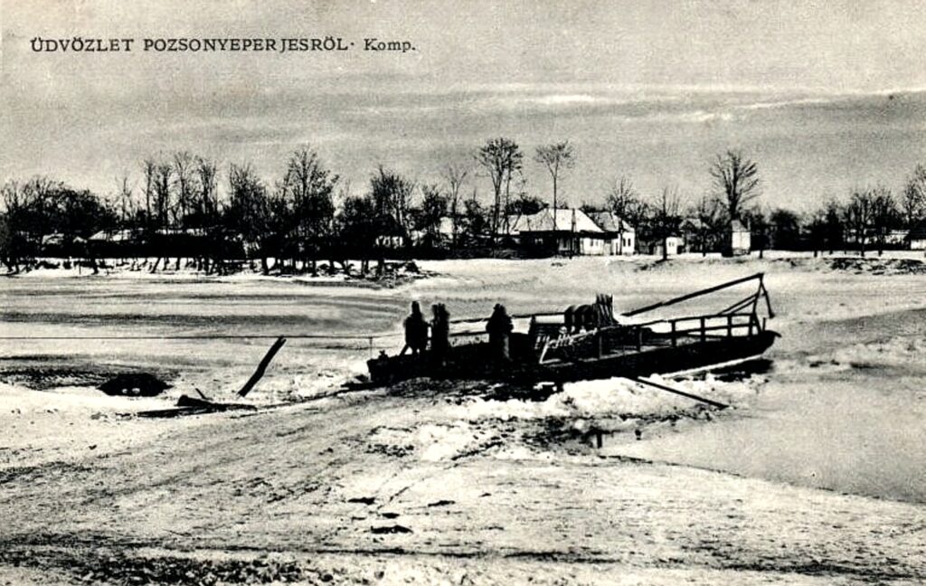 A település nagyobb része a Kis-Duna bal partján terül el a határa a folyó mindkét oldalára kiterjed. A folyón az átkelést 1940-ig, a híd felépítéséig kompjárat biztosította. A komp az Esterházy-uradalom tulajdona volt, míg a helybeli úrbéres gazdaközösség 1792-ben meg nem vásárolta. 1922-ben a közbirtokosság a kompot átadta Pozsony vármegyének, abban a reményben, hogy a kompjárat helyett hidat épít. 1945 márciusában a visszavonuló németek a hidat felrobbantották. A Kis-Duna híd tervezője Menyhárd István (1902-1969) mérnök, statikus.