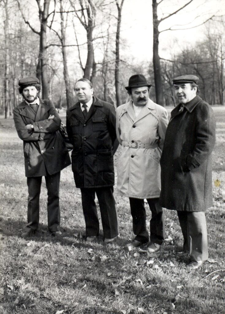 A pozsonyi Petőfi szobornál (Janko Kráľ park, ma az Aupark része) az 1980-as évek közepén. Balról: Lacza Tihamér, Dénes György, Török Elemér, Szőke József.