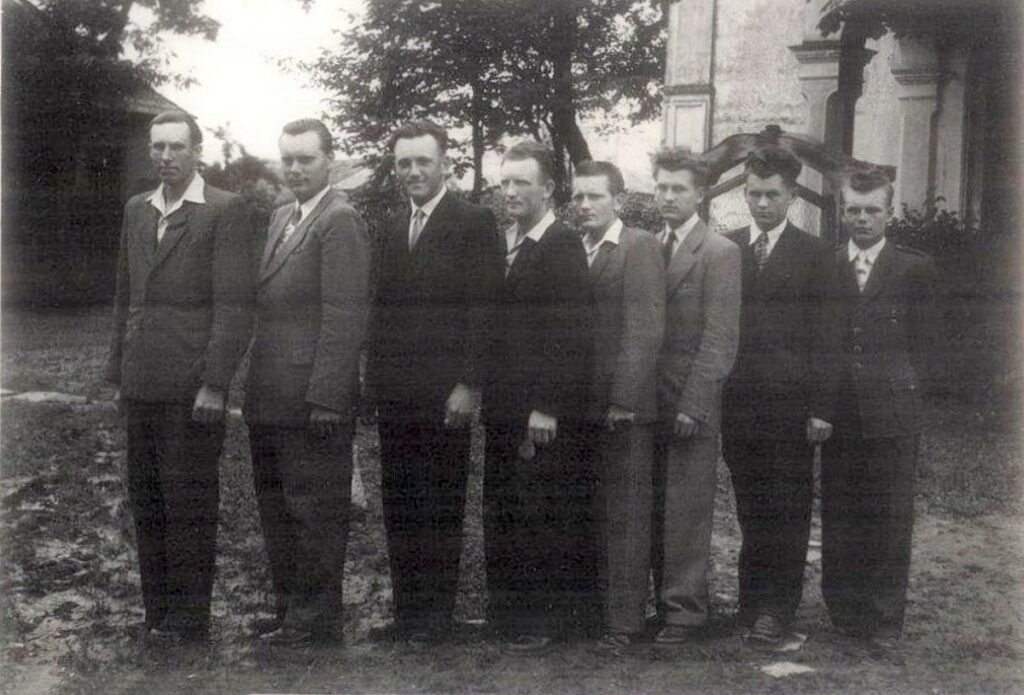 A radnóti legények 1950-ben a templom bejárata előtt, név szerint balról jobbra: Pozor Kálmán, Pósa Dezső, Bodon Gyula, Pósa Elemér ifj.ragályi, Pósa Zoltán, Plesivcsák János, Lukács Géza és Jónás Lajos.