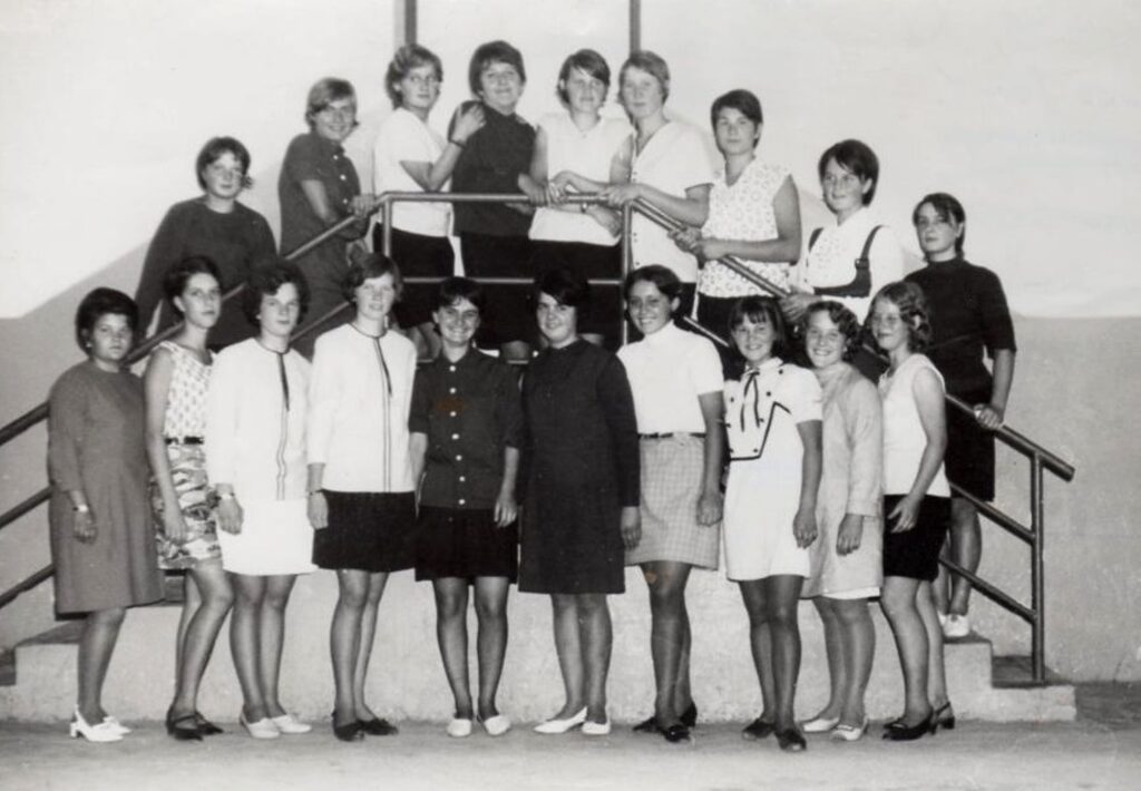 Első sor, balról jobbra: Oláh Veronika (Síposné), Takács Rozália (Knézelné), Nyári Éva (Szabóné), Kozmér Mária (Adamkóné), Hyža Gabriella (Garayné), Podhorányi Helena, Adamkó Magda (Vargáné), Puskás Katalin (Flaskárrné), Kolecsányi Veronika, Klaszta Erzsébet (Mészárosné).