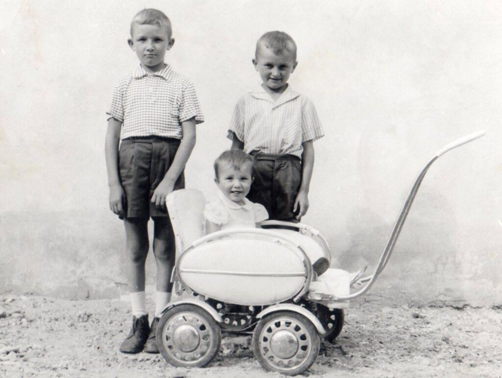Kotrba Mihály (balról), Kotrba Lajos, és a gyerekkocsiban, Kotrba Katika.